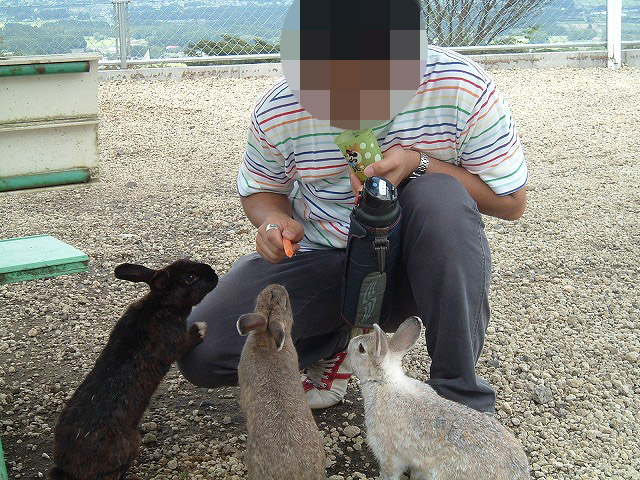 としくん休みだし、 天気にも恵まれたので、 むぎ茶とコーヒーとチョコレートを持って小林市コスモス牧場に行ってきました。 コスモス牧場と言えばやっぱヤギ! ちょっと離れて見ていたら1人と1頭でコソコソ話をしていました。 ナニを話していたか気にはなるけど・・・ この白いヤギの可愛さに気を取られてそんな事忘れてしまいましたが。 で、このヤギに緑の落ち葉を拾って来て、やっていたら気に入ってくれたみたいで お返しにコソコソ話をしてみました。 内容は教えな~い! いつも同じ場所で同じように歯をちょっと出して 同じようにうたた寝しているヤギ。平和です。 前回6月に来た時に生まれたばかりで小さくて、でもみんなに虐められてた このヤギに勝手に名前を付けました。 命名「むぎチョコ」 小さくてオシャレなチョコレート色しているから。 かなり逞しくなってニンジン争奪戦も果敢に挑む立派なヤギに成長していました。 でも少し歩き方がぎこちないし目が少し悲しげ・・・ でも大きいヤギに、もまれながらも一生懸命にニンジンをもらいに来ます。 こんなむぎチョコをギュッって抱きしめたいなぁ~ がんばれ~むぎチョコ!! で、コスモス牧場はヤギだけじゃぁ~ありません! ウサギにはモテるとしくん え~結局、4時間ヤギと戯れっぱなしで、 変な人と思われたに違いありません。 平気です。ヤギちゃんと居られるなら・・・アブナイ 他にポニー、牛、ブタ、キジ、モルモットなど地味だけど みんながのびのび暮らしています。 動物園や他の施設では見られないくらい本当にのびのびしています。 それは多分ここの素晴らしい環境のお陰。 宮崎市内は35℃近くあったらしいけど ココは高原のさわやかな風が吹いてたし・・・ 霧島山麓の静かな高原にあるコスモス牧場は大好きで大切な場所のひとつです。 |