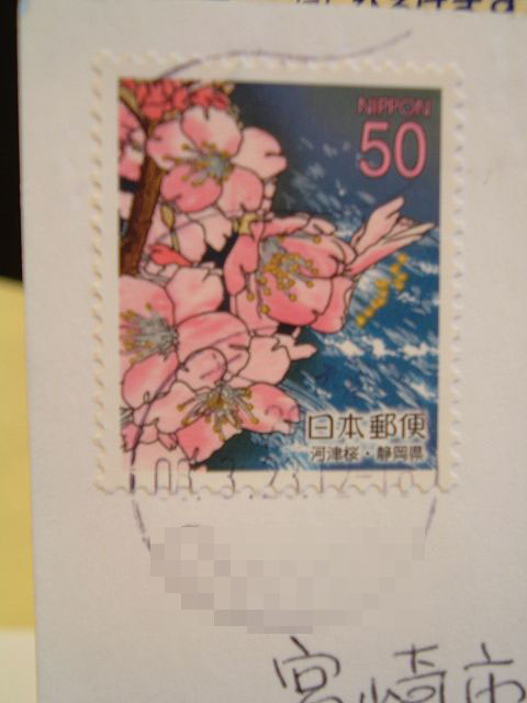 この切手とハガキ、キレイですよねぇ~2人で目をキラキラさせて眺めてました。 宮崎は昨日開花宣言が出されましたが、あまり桜は咲いていません