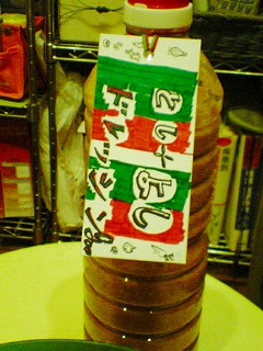 ![]() なので・・・ドレッシング作りをしました。何故か・・? 買うと結構高いしもう一歩美味くないので前はよく作ってましたが 最近は・・・怠けてましたっ。 としくんちの病院の管理栄養士さんのレシピをパクってアレンジ。 大量に出来たので醤油のペットボトルを再利用して冷蔵庫に保存。 少し貧乏くさいけどねぇ~ ![]() レシピ大公開! ■約800cc分の材料 玉ねぎ(中)1個 にんじん 1/2本 ごま 50g(大量!) 酢 1カップ 醤油 1カップ 砂糖 1/2カップ ブラックペッパーたっぷり オリーブオイル または サラダオイル 1/2カップ ■作り方 全部ミキサーにかけるだけ! でもごまだけはすり鉢であたった方が多分旨いはず・・ 加熱していないので冷蔵保存でお早めに!コレがかなり旨かったのよぉぉ~ ![]() レタス半分食べてしましました。 で、せっかくなのでとしくんにラベルを造ってもらいました ![]() 明日はどんなサラダを作るかのぉ~ |
