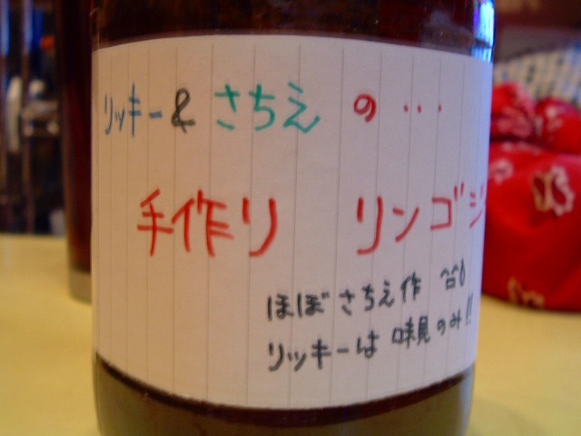 今日、としくんは勤務先の新年会で居ません。 今晩はひとりかなぁ~と思ってたら リッキーから「20分後に家に居る?」ってメール。 もちろん居るってメールしたらリッキー&幸恵がちゃん来てくれました。 玄関先で「あけましておめでとうございます」 そう、今年初めてのご対面。 そしておみやげを持って来てくれました。 それがコレ↓ なんと手作りリンゴジャム!しかも手作りラベル付き!! それもまだ少し暖かい位の出来たてでした。 残念ながらパンとかクラッカーとか無かったので味見は出来なかったけど。 手作りですぞぉ!!すっげーね!!! で、今日はリンゴジャムのお二人は早めに帰りました。。。 その後直ぐとしくんから迎えに来てねんの電話があり迎えに行きました。 同僚の日◯さんも◯塚の自宅へ送って行く途中、 酔っぱらいの2人、としくんと日◯さんのかみ合わない会話がかなり面白くて 1人運転しながらほくそ笑んでました・・・ やっぱ酔っぱらいは面白れ~ね ![]() |