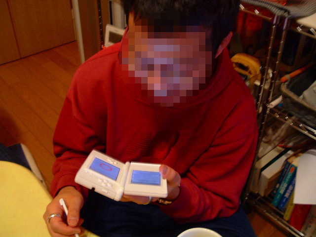 昨晩はリッキーさちえちゃん夫妻が遊びに来てくれました。 しかも、ニンテンドー DS Liteを持参して! 結論から言うとDSってめっちゃ面白いっ! 脳トレやってみたけど僕は1回目が60才の判定。 としくんは・・・本人の名誉の為ナイショにさせてもらいます。 ゲームの苦手な僕もコレは欲しいなっ。 必死です・・・ |