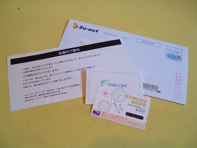 のガラガラ福引きで当たった図書カード500円。