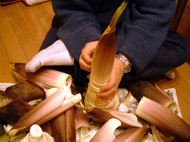 これは、たけのこ三昧かと瞳孔開き気味で皮を剥きます