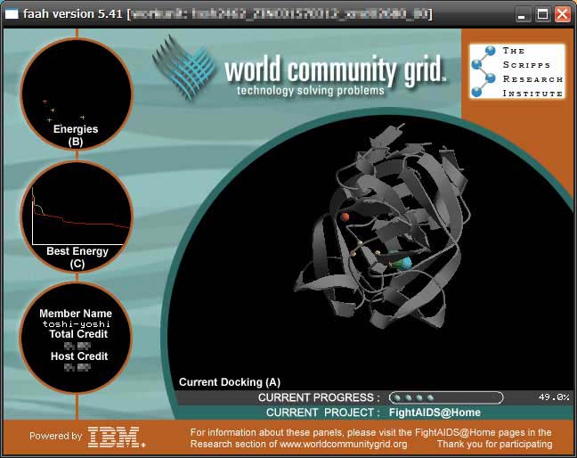 ウチのPCはCPUの発熱がヒドイので室温が上がる夏はちょっと休憩していました。 ちなみにBOINCと言うソフト(分散クライアント)を使いWGCと言うプロジェクトで FightAIDS@Homeのファイルを解析しています。ウチはチームGBrに所属。 と、言っても最初にBONICをインストールしてチョチョッと設定したら後は勝手にやってくれます。 僕向きです ![]() WGC(World Community Grid)とは… IBMの援助で発足したプロジェクトで、目的は人類に貢献するプロジェクトに取り組むための、 世界最大の公的コンピューティング・グリッドを構築することです。 World Community Grid ではテクノロジーを、公的な非営利組織のみが人道的研究に 利用できるようにしています。 プロジェクトの成果はパブリックドメインとして世界中の研究コミュニティーに公開されます。 つまり、自分のPCが宿題をもらってきて余剰能力で解析し、宿題が終わったら提出して いろんな研究のお手伝いが出来るんです。 ウチは最新の高性能なPCじゃないし、電源入れてる時間も短いけど 小さな力が集まると大きくなるだろうと・・・ ・・・いつもに増して意味不明な文章だなぁ~ ![]() |