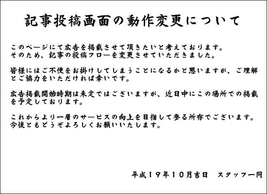 どうやら記事を書いているココに広告が入る様になるみたいです。