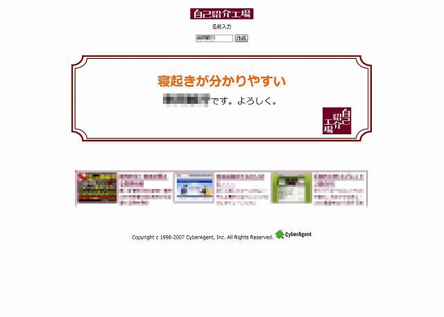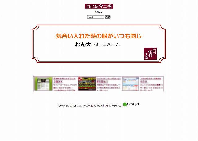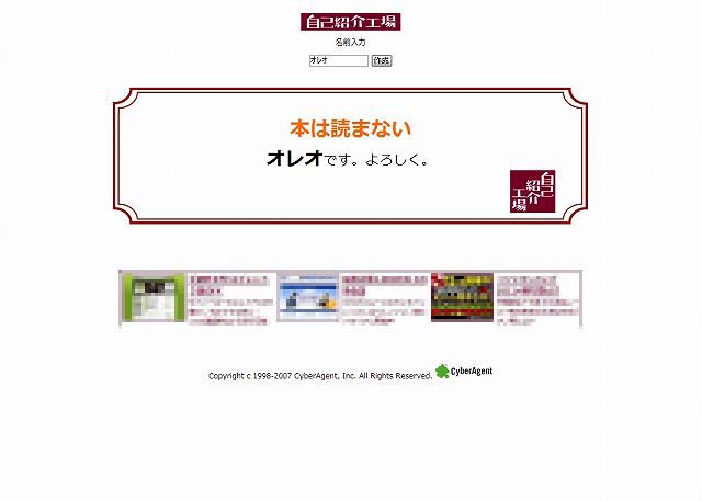 自己紹介工場でわが家の自己紹介! としくんと僕は本名でやってみました。 ↑としくん 寝ぐせが爆発してるので確かにすぐ分かる ![]() ↑オレオ(Harbot) お買い物帳しか読まない。ってか本を持ってない ![]() ↑わん太(Blogpet) 確かにいつも同じ毛皮 ![]() ↑よし 確かに、食前は暖房。食後は冷房 ![]() ![]() 今後ともヨロシクお願いします・・・ん? でも…実は…自己紹介工場が面白いから、ただ使いたかっただけなんです ![]() リンク:自己紹介工場 |